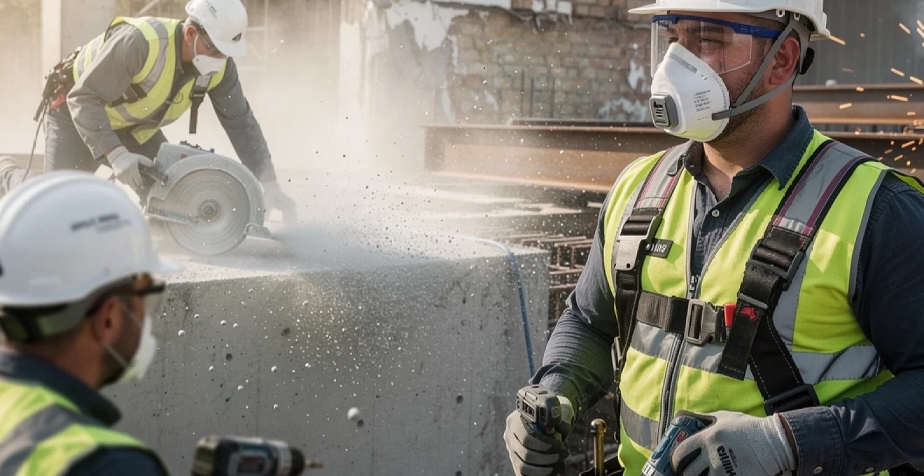 Poussières de silice cristalline générées par le sciage et perçage de béton